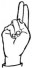 На ћирилици написано ИСИДОРА БОЛУНОВИЋ састоји се из 16 слова [?]. Исписано ћириличном једноручном азбуком за глувонеме: